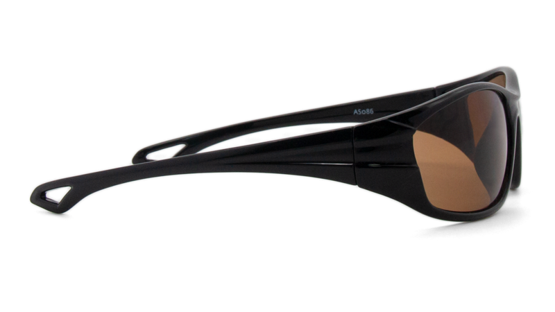 Спортивные очки с коричневыми линзами в пластиковой оправе облегающей формы с отверстиями в дужках для держателя/шнурка. Форма оправы - unisex. Цвет: черный глянцевый.