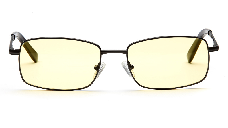 Компьютерные очки в крупной металлической оправе классической прямоугольной формы на широкое лицо. Цвет: черный.