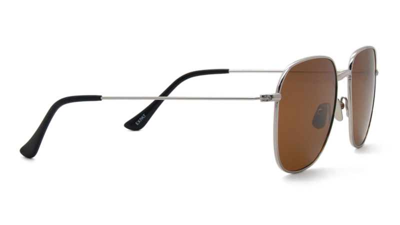 Солнцезащитные очки EXPAT с коричневыми антибликовыми линзами. Отлично работают в сочетании яркого солнца и мокрой дороги. Форма - unisex. Цвет оправы: серебро глянцевый.