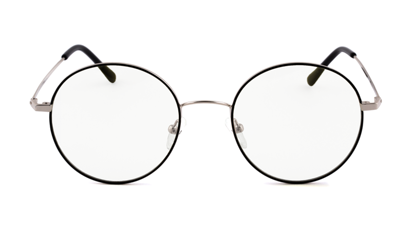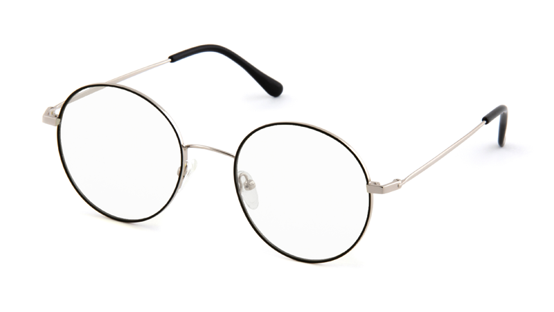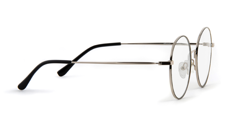 Очки с диоптриями AF096 в стильной оправе «современная классика». Круглая тонкая оправа из прочной и при этом гибкой нержавеющей стали (flexible stainless steel). Форма unisex, на средний размер лица. Цвет: серебро (фронтальная часть - черная).