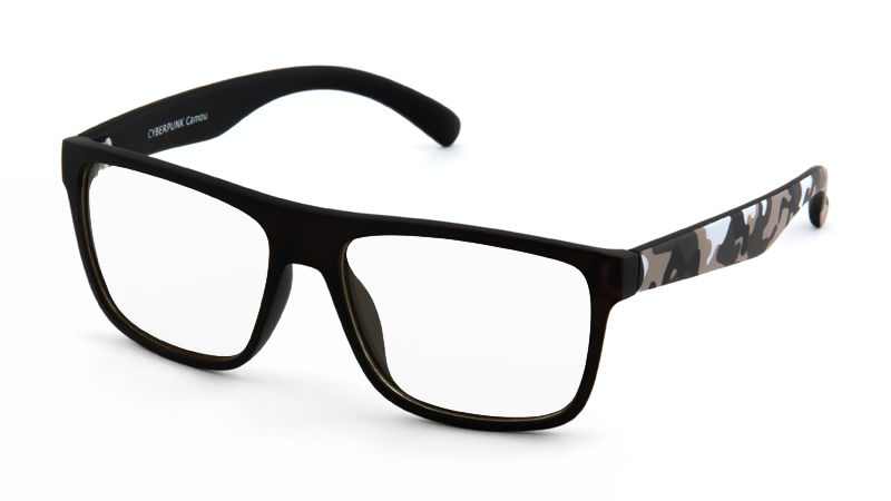 Очки с диоптриями CYBERPUNK Camou в пластиковой оправе. На средний размер лица. Цвет: черный матовый / цвет дужек: Camou.