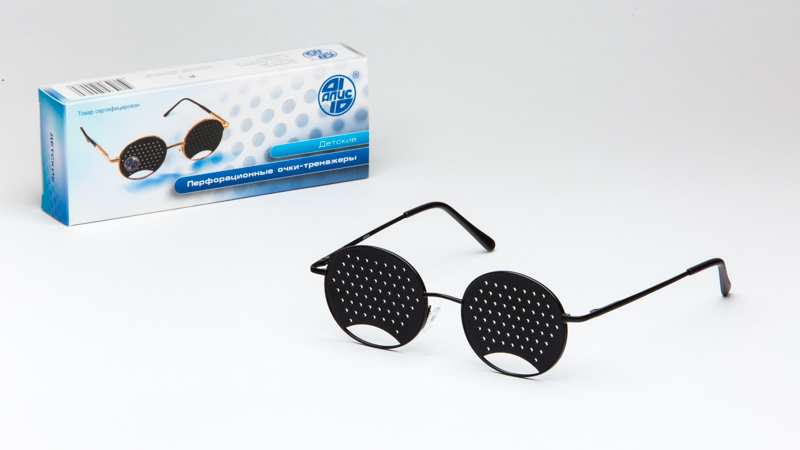 Перфорационные очки-тренажеры - очки для профилактики близорукости и дальнозоркости. Форма оправы: детская. Цвет: черный.